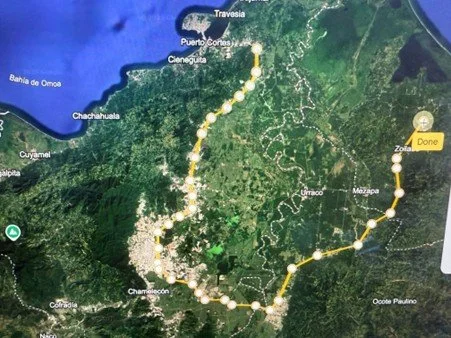 Una vía de alivio que contribuiría grandemente a evitar el problema del colapso de tránsito en el Valle de Sula y las limitantes de desarrollo del litoral atlántico sería una carretera que uniese Puerto Cortés y Tela. La misma debería comenzar a la altura de la comunidad de Concordia, a unos ocho kilómetros de la ciudad de Puerto Cortés. La imagen muestra el recorrido actual hacia el punto final propuesto.